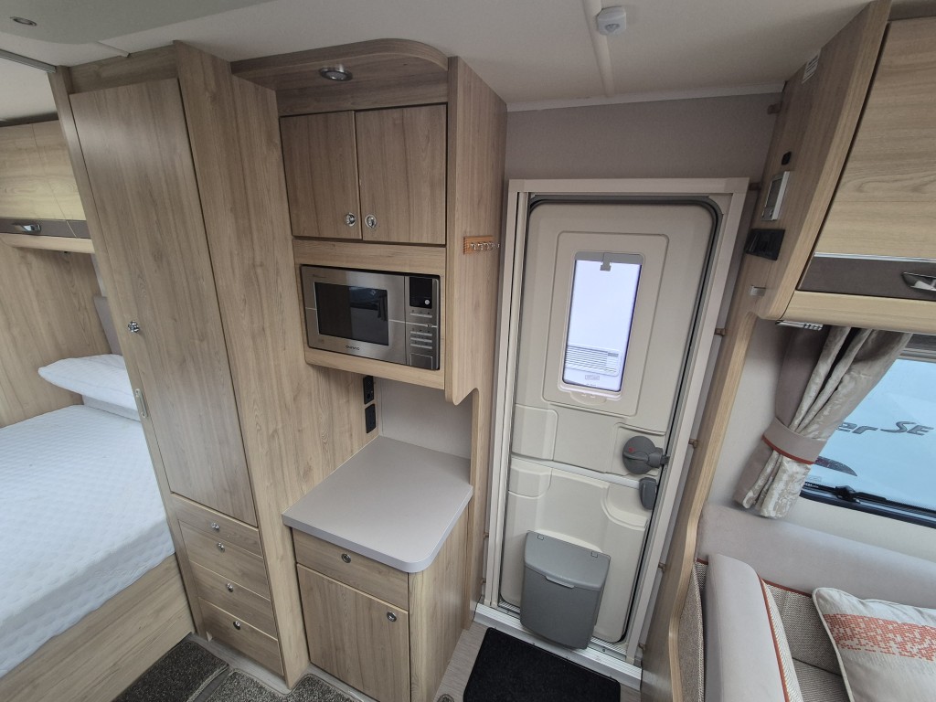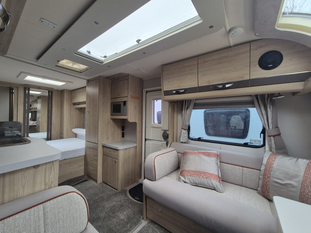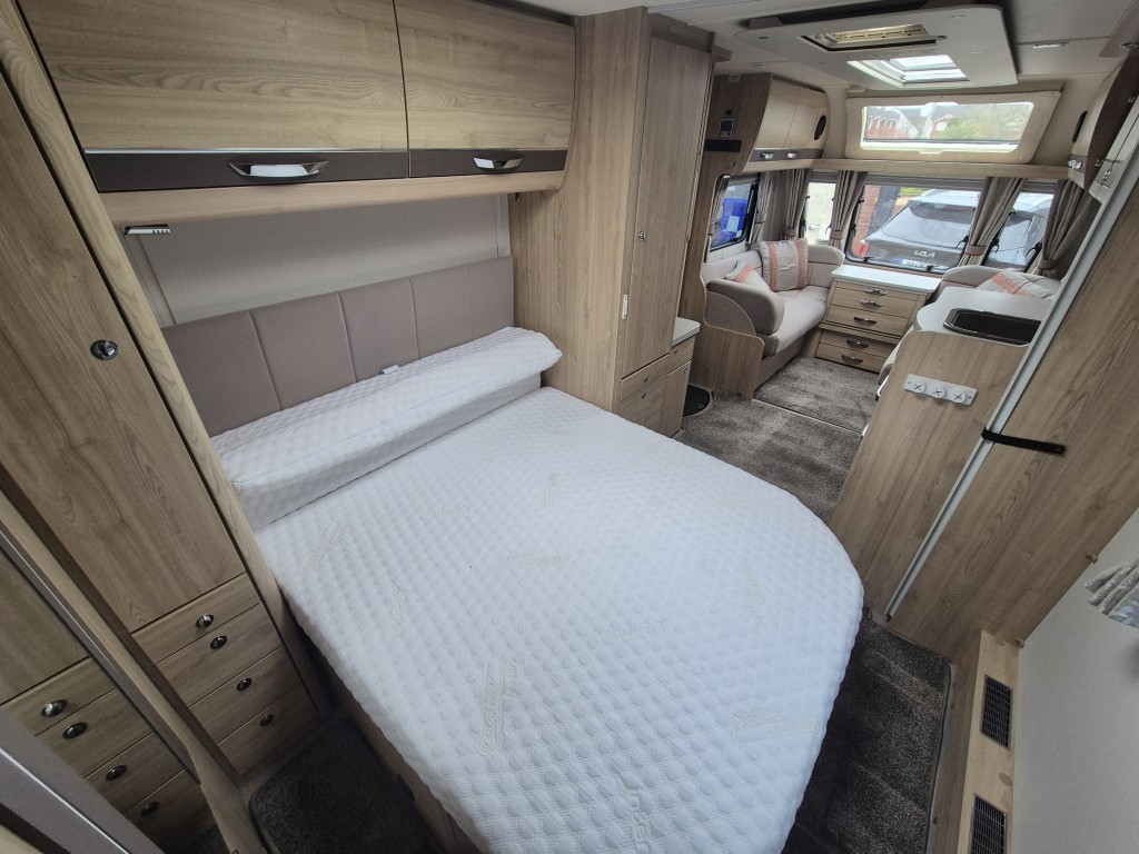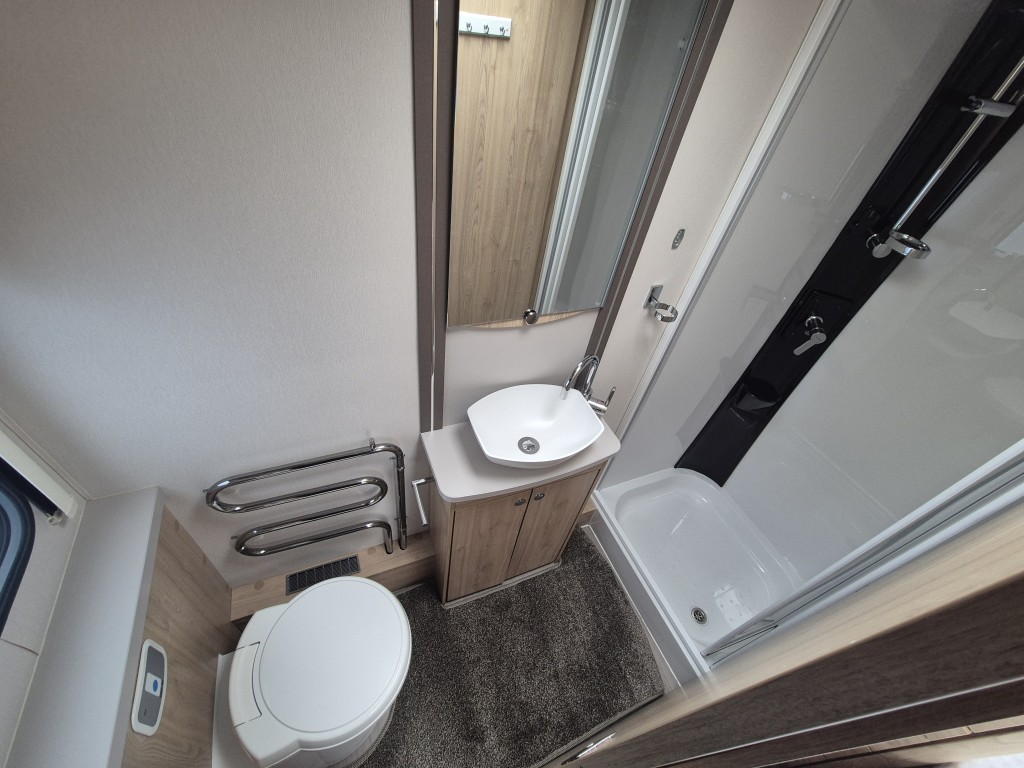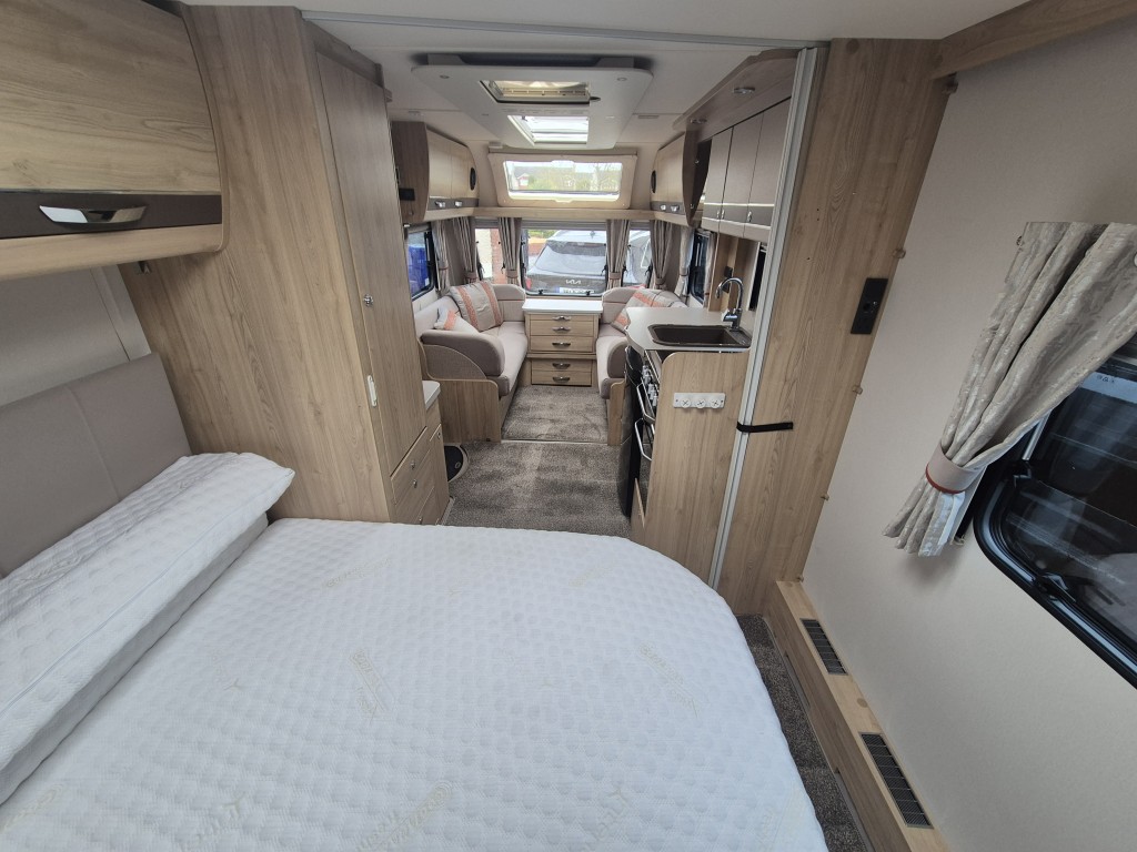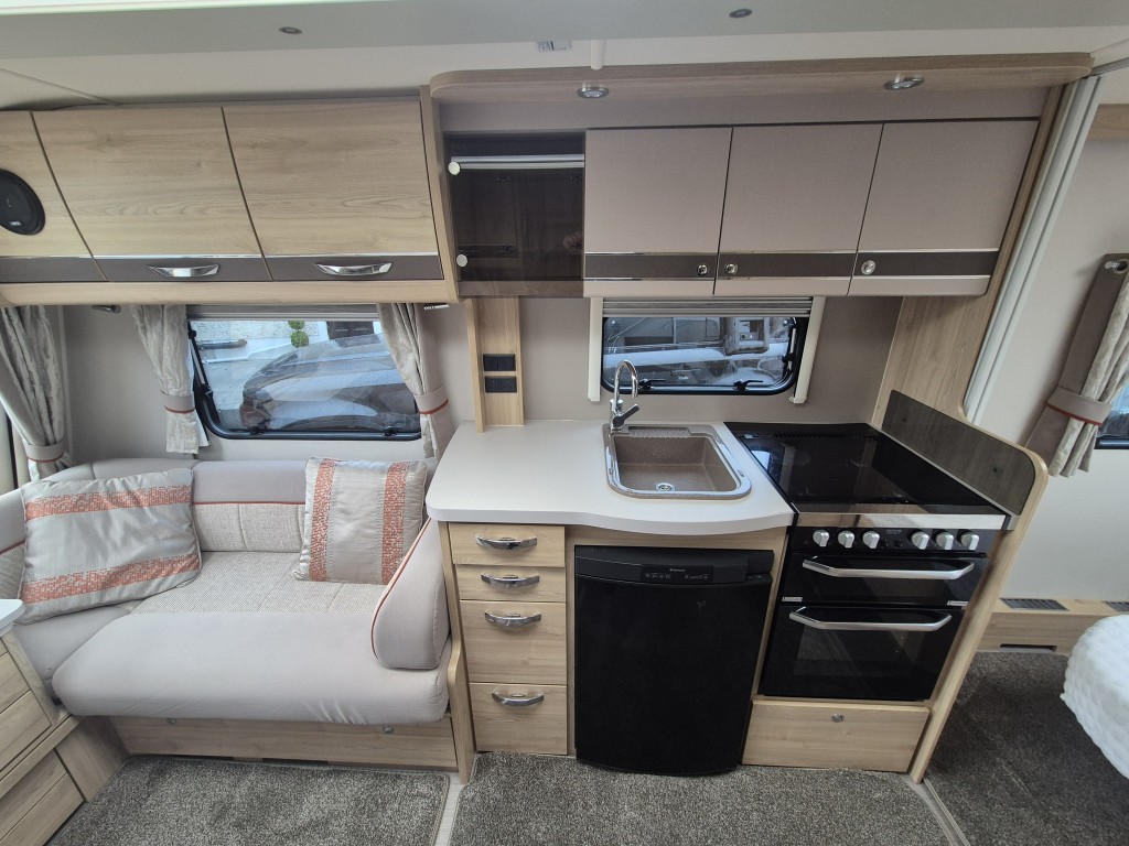 3 Way Fridge, Alarm System, Alko Chassis, Alloy Wheels, Anti Sway Hitch, Blackout Blinds, Blow Heating, Cassette Toilet and Shower, Dual Heating, Fixed End Bedroom, Fixed End Washroom, Fly Screens, Full Standing Cooker, Gas Heating, Heki Skylight, Island Bed, Microwave, On Board Water Tanks, Outside Shower, Oven Hob and Grill, Sound System, Spotlights, U Shaped Lounge, Wheel Clamp, Electric Heating, ATC Chassis, Removable carpets, Solar panel
